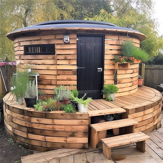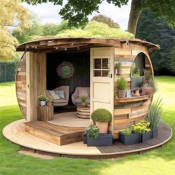 Discover a world of inspiration with remarkable wood shed and cabin ideas that seamlessly blend into your garden oasis, enhanced by the presence of a deck adorned with planters and carefully chosen decor elements. These ingenious concepts marry rustic charm with modern convenience, creating a harmonious retreat that embodies both functionality and beauty. The wood shed, crafted with meticulous attention to detail, offers a stylish storage solution while adding an architectural focal point to your outdoor haven. Nestled nearby, a cozy cabin beckons, inviting you to escape into its warmth and comfort. The integration of a deck adorned with planters brimming with lush greenery transforms the surroundings into a vibrant and rejuvenating space. As day transitions to night, the ambiance takes on a magical allure with the soft glow of carefully arranged decor elements. From twinkling string lights to artisanal sculptures, these accents infuse the scene with personality and charm. The deck itself becomes a platform for relaxation and connection, where you can unwind alone or gather with friends amidst the tranquility of your garden hideaway. This fusion of wood shed, cabin, deck, planters, and decor crafts an enchanting environment that effortlessly marries the allure of the outdoors with the comforts of home—a sanctuary where creativity, nature, and leisure seamlessly intertwine.