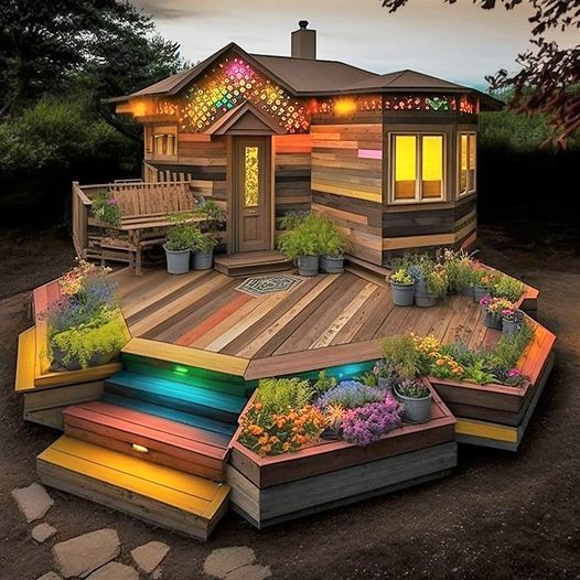wood shed, a charming cabin deck, and the enchanting presence of planters and decor lights. These innovative ideas seamlessly blend practicality and aesthetics, creating a space that transcends mere functionality. The wood shed, meticulously designed and expertly crafted, offers a dedicated storage solution that blends harmoniously with the natural surroundings. Adjacent to it, a cabin deck extends an invitation to unwind and connect with the outdoors. Adorned with vibrant planters bursting with life, the deck becomes a living canvas that infuses the area with color and vitality. As the sun sets, the scene transforms with the soft radiance of carefully placed decor lights. Whether casting a warm glow or gently illuminating pathways, these lights create an intimate ambiance that beckons you to linger. The deck becomes an extension of your living space, a stage for relaxation and gatherings amidst the tranquility of your garden. This integration of a wood shed, cabin deck, planters, and decor lights offers a symphony of beauty and functionality—a harmonious haven where practicality and creativity harmonize, allowing you to immerse yourself in the wonders of nature without sacrificing modern comforts.