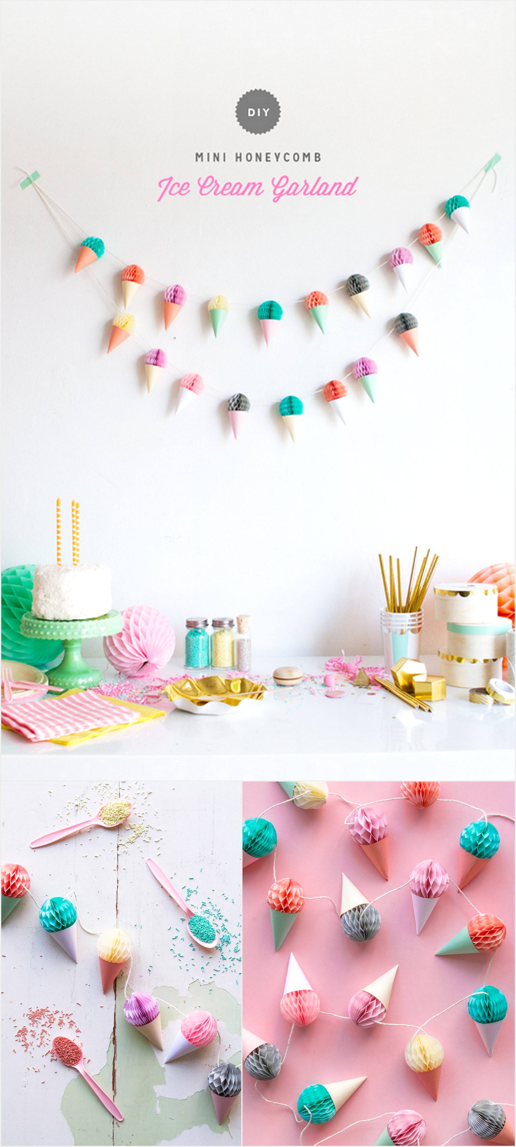 DIY MINI HONEYCOMB ICE CREAM GARLAND