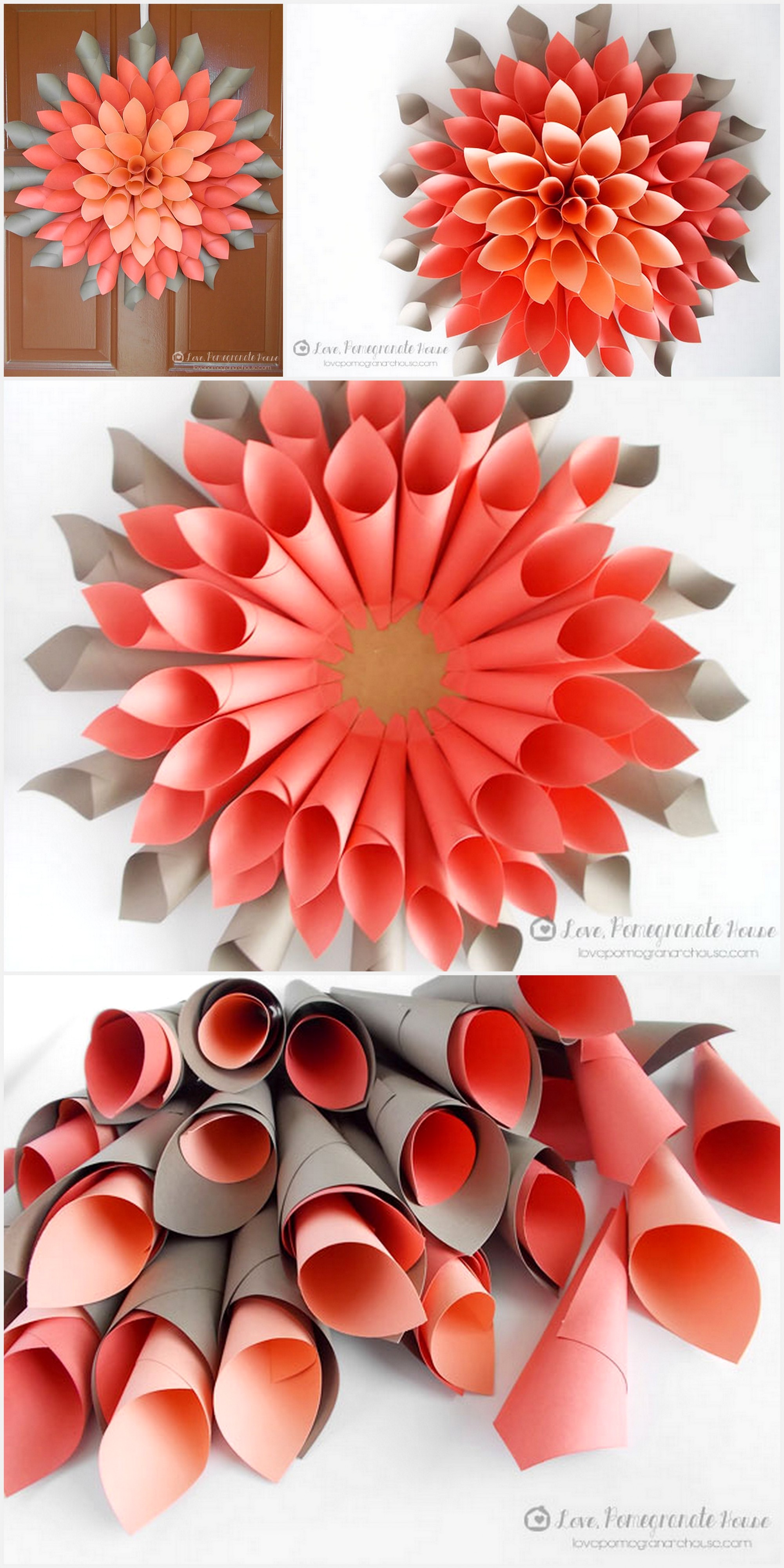 Paper dahlia wreath made with the orange and grey paper. Since dahlia is most beautiful flower of all time, you can definitely make it in no time! Make paper dahlia flowers in different brilliant hues and show them in any room that requirements helping up. Learn about making them in the link accessible here!