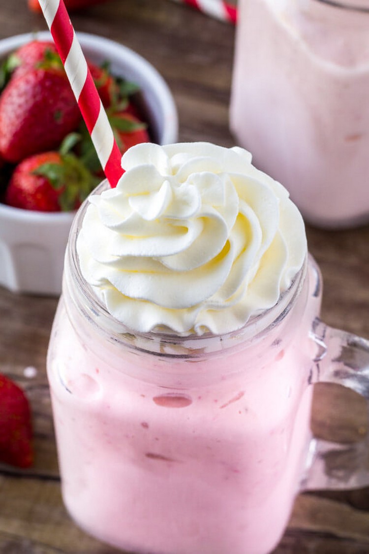 In case you’re not a protein powder master, we like swapping in 2-3 tablespoons of hemp seeds with a dash of vanilla extract to make this mouth watering milkshake recipe. Once you get the basic ingredients to make it up, add whipped cream and strawberry over it to complete the milkshake!